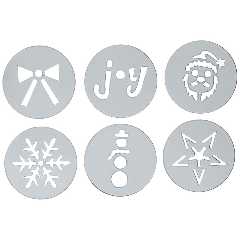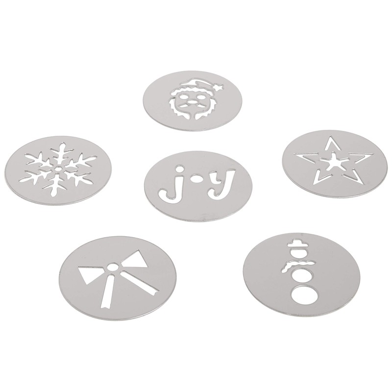 - Set includes 6 festive disks for holiday inspired cookies, including: Snowman, Bow, Star, Snowflake, and Santa