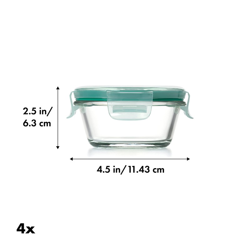 - Set includes four 1 cup borosilicate glass containers with leakproof lids