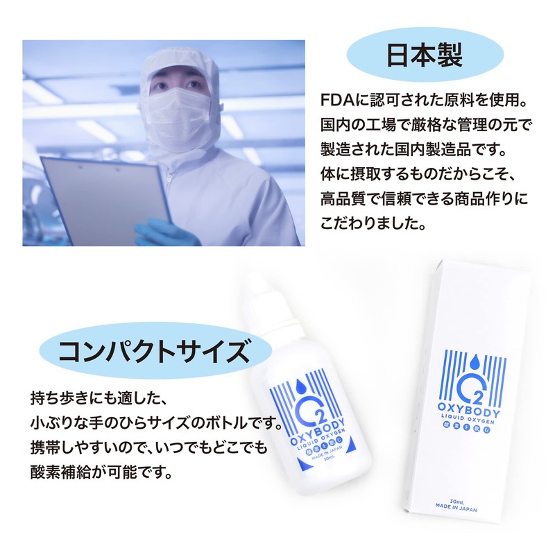 - 【✅溶解型酸素】OXYBODY(オキシボディ)では溶解型酸素の補給ができます◎溶解型酸素は小さく血管の隅々まで届く酸素です。【✅信頼の日本製】FDAに認可された原料を使用。さらに、国内の工場で厳格な管理の元で製造された国内製造品。