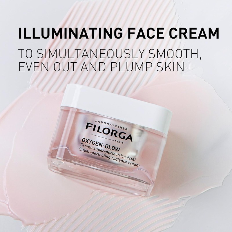 - OXYGEN-GLOW, una crema de día superperfeccionadora que corrige los defectos de la piel en tiempo real y potencia su luminosidad de forma instantánea y duradera para obtener una piel bonita al natural.