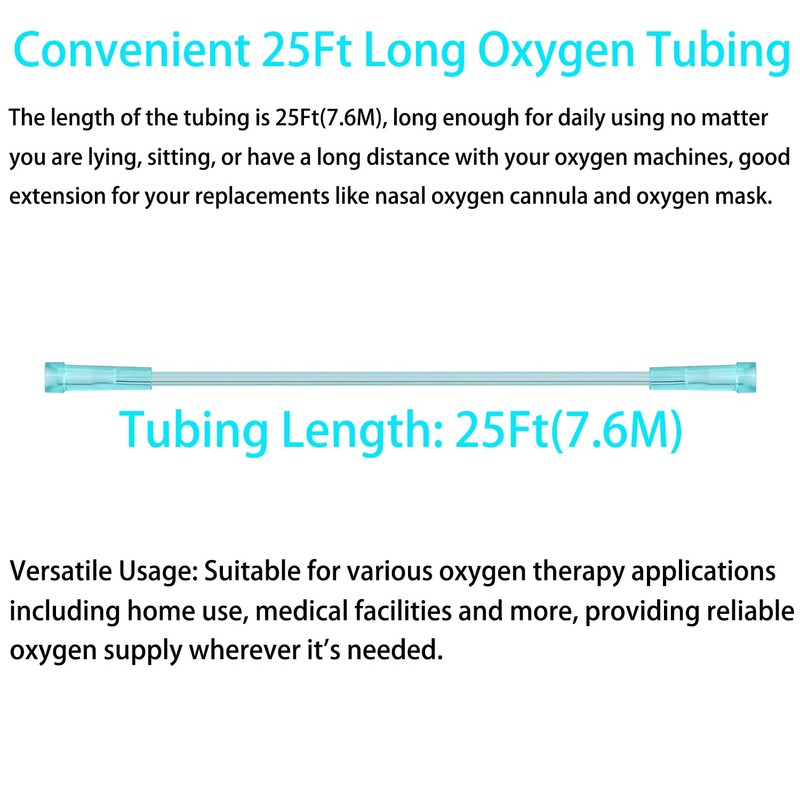 - Six Channel Design and Long Length Tubing: The tube is 6-channel inner lumen design providing an uninterrupted smooth flow of oxygen and provides maximum safety for the patient. Each tube measures 25 feet(7.6M), providing convenient ample length for various applications.