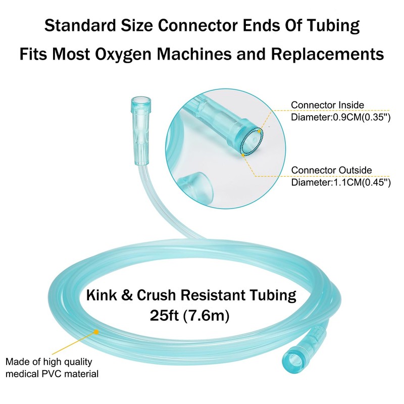 - Universal Size Connectors: The oxygen tubing features standard end connectors compatible with most oxygen concentrator tubing systems. This makes it easy to integrate with your existing oxygen supplies, ensuring secure and effective connections.