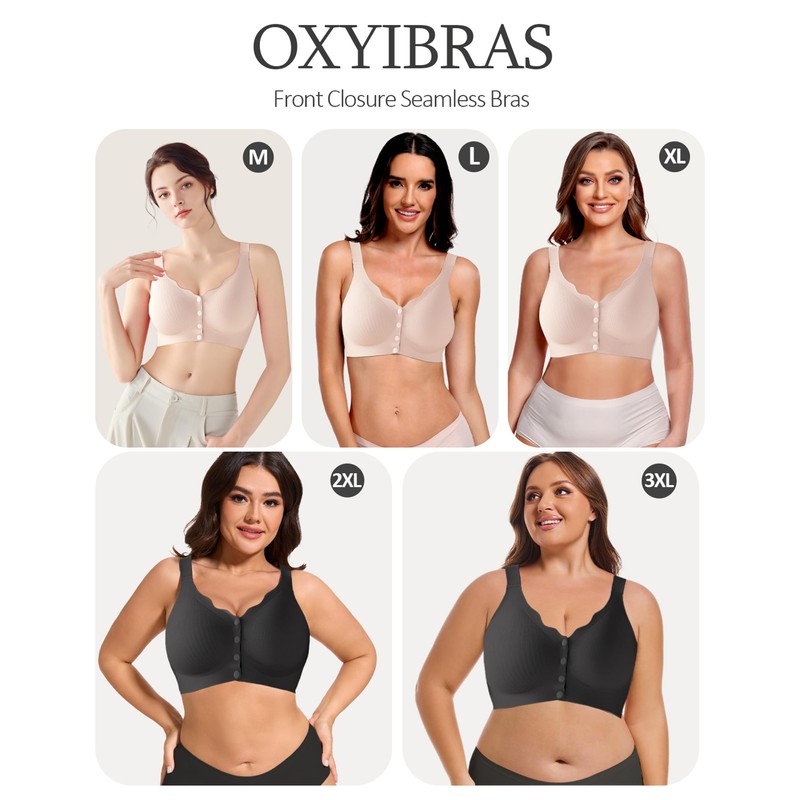 OXYIBRAS Front Closure Bras for Women Comfort Wireless Bar Supportive No Underwire Seamless Post Surgery Bralettes Skin XL