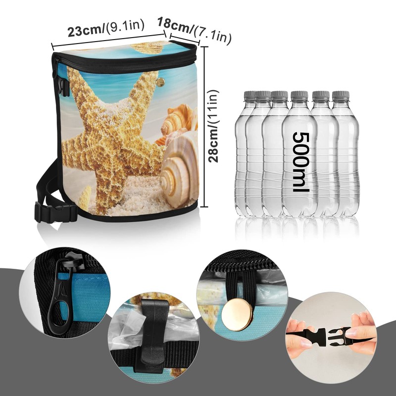 Oyihfvs Starfish Seashells on The Beach with Blue Sky Spill-Proof Car Trash Can Organizer Hanging Large Auto Garbage Storage Bag Bin with Big Opening Lid Leakproof Waste Basket