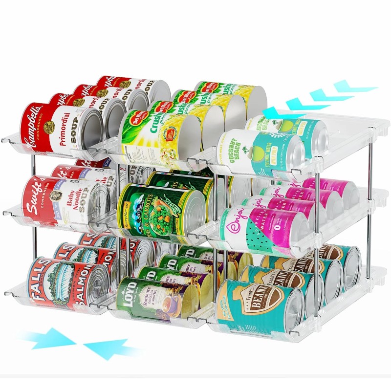 Effortless Access with Sliding Feature: Can storage each shelf is designed with a sliding feature, allowing cans to glide out smoothly for easy access. No more struggling to reach the back of your pantry
