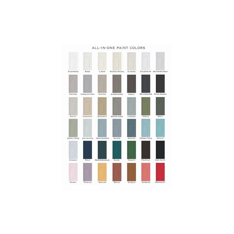 ALL-IN-ONE Paint, Durable cabinet and furniture paint. Built in primer and top coat, no sanding needed. Includes our 30 featured color card - Oyster, Quart