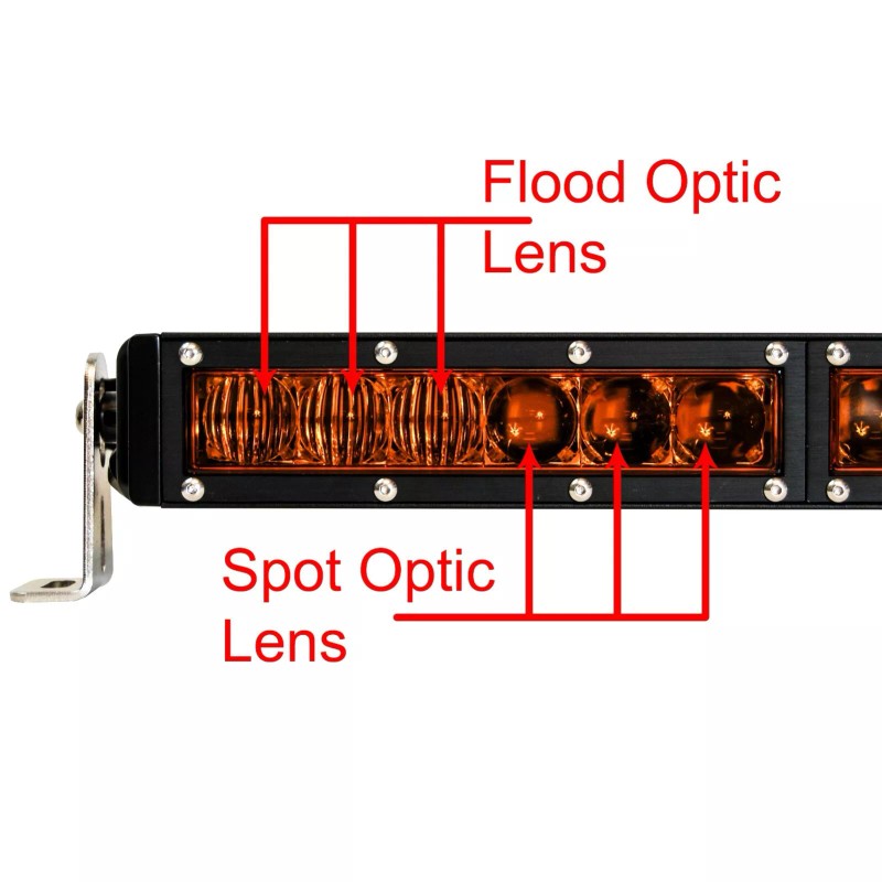 • Combo optic lens projects a longer beam distance and wider beam spread than the traditional reflector lens light bar.