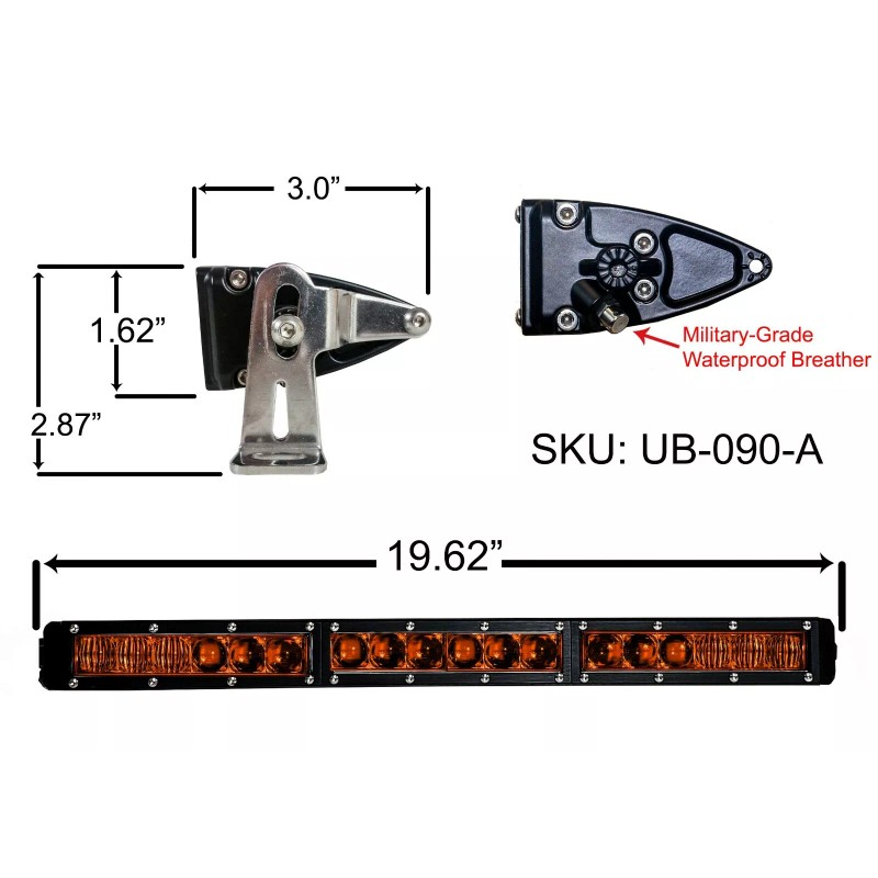 • 90 Watts Amber 20-inch OZ-USA® UB Series single row LED light bar. Spot + Flood Combo beam.