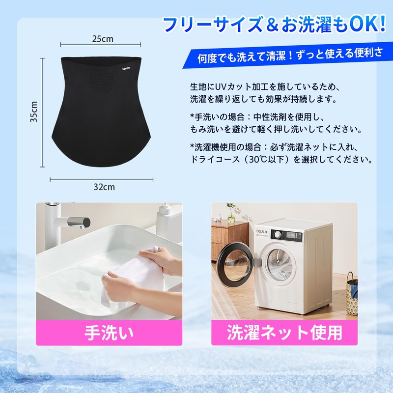 OZERO (Supervised by an American Dermatologist) Face Cover, Ear Cover, UV Protection, Cooling Sensation, UPF 50+ Measured, For Summer, One Size Fits Most, Neck Cover, Face Mask, Men's, Women's