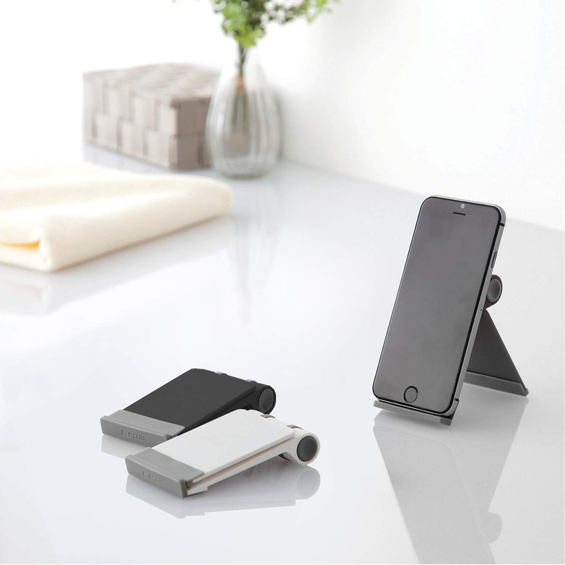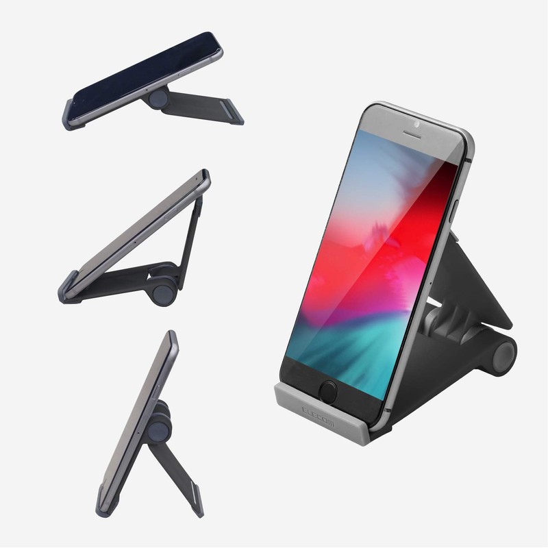 エレコム スマホスタンド 角度調整可能 コンパクト ソフトレザー ブラック P-DSCMPBK