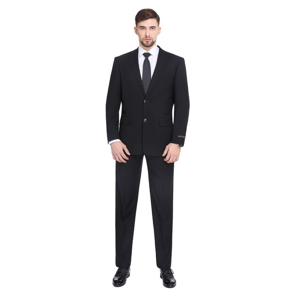 P&L Men's 2-Piece Classic Fit Office 2 Button Suit Jacket & Pleated Pants Set Black 40 Regular / 34 Waist
