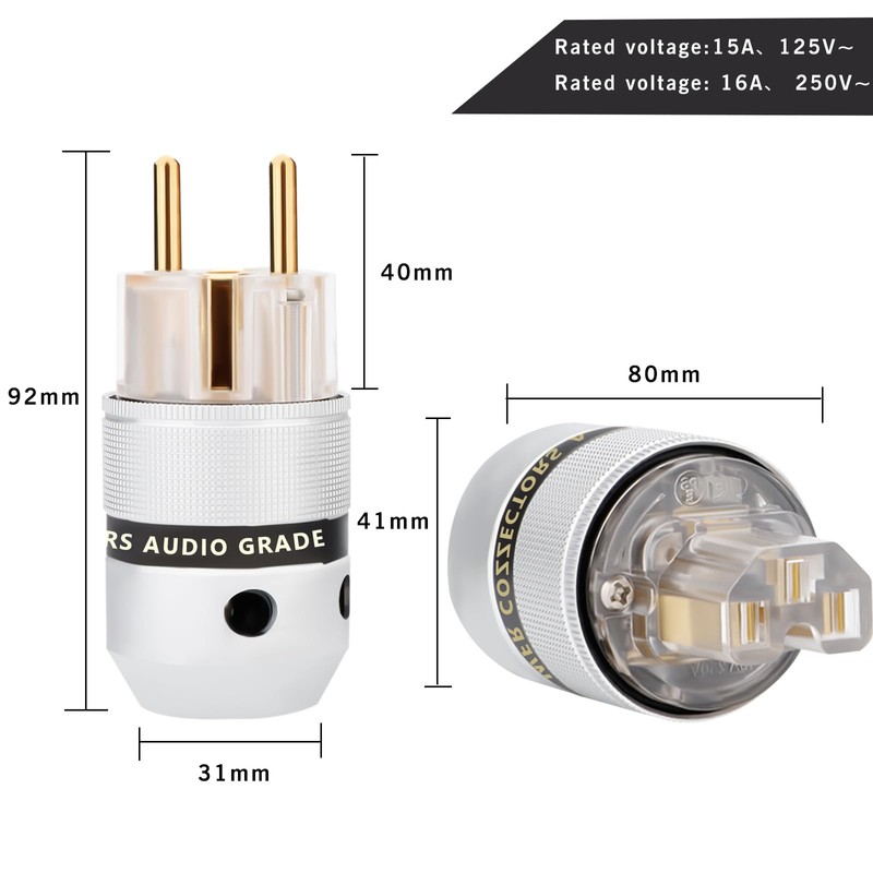 - With a rated power of 16 A, 250 V A.C. This hi-end Euro plug provides a stable and efficient power supply for your audio equipment and other devices.