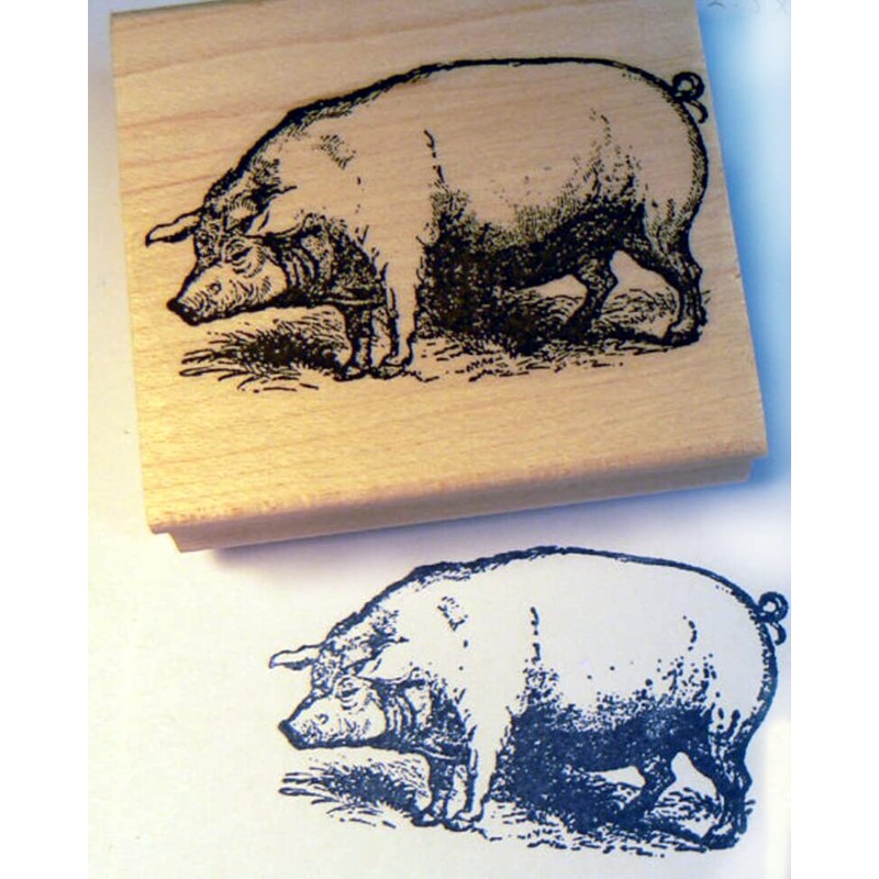 P10 Vintage Pig Rubber Stamp