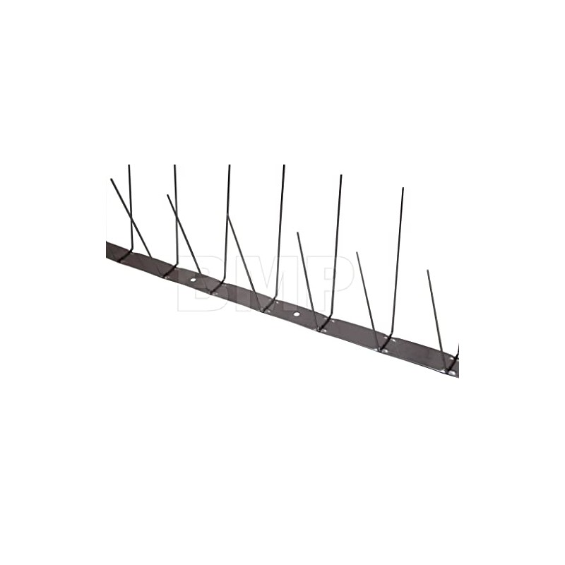 - MEASUREMENTS: BASE: 39 in long 3/4 in wide 0.045 in stainless steel every 4/6 in a mounting hole SPIKES: strong 14 gauge stainless steel length of spikes 4-1/2 in width at the bottom: 1 in width of protected area: 3 in height bottom to top: 4-1/2 in