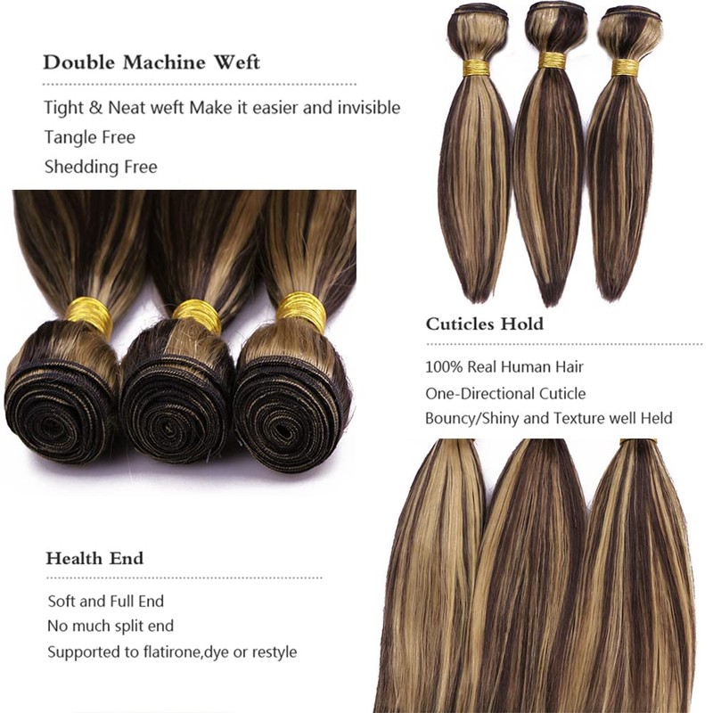 #P4/27 Bundles Highlight Straight Bundles 26 28 30 Inch Double Weft Brazilian Remy Hair Extensions Two Tone 8A Grade Unprocessed Virgin Hair