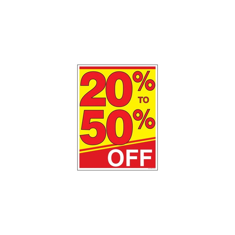 P40UTF 20 Percent to 50 Percent Off (%) Sale Window Sale Sign Posters Retail Business Store Signs (P40-25" x 33")