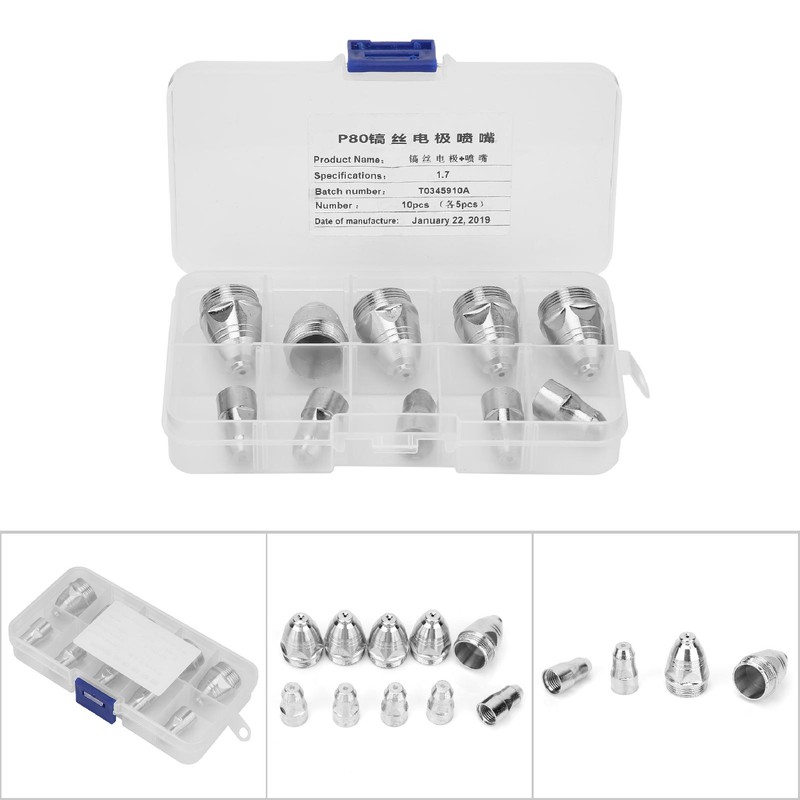 1、P80 electrode nozzle is used for air plasma cutting machine, can cut medium and thin metal sheet. 2、The 10pcs electrode nozzle set can meet different using needs. 3、Convenient and flexible operation, smooth cut, narrow slit, small thermal deformation, easy slag cleaning, high cutting efficiency. 4、High quality wire electrode, resistant to high temperature and corrosion. 5、100% brand new and high quality.