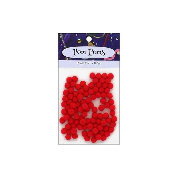 PA Essentials Pom 7mm Pkg 100pc Red