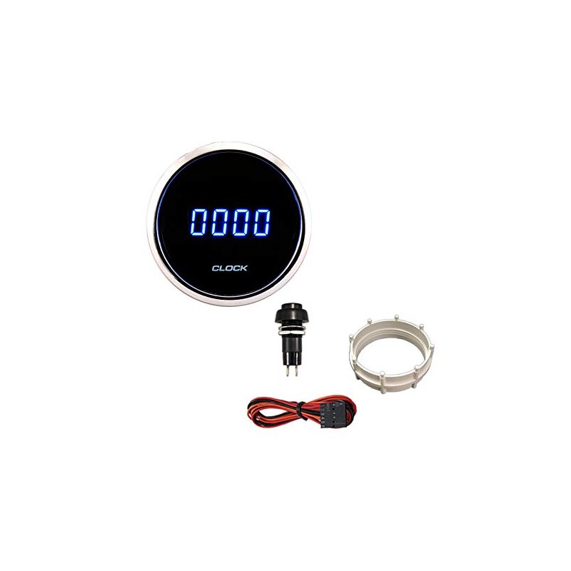PA LED Auto Digital Clock Gauge Blue Back Light 24 hr for Car Interior Dash 52mm 2 1/16"(12 Volt DC)