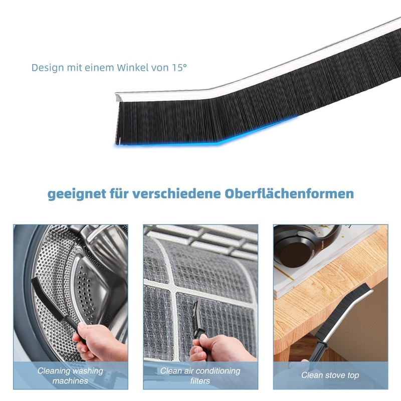 - 【Reinigungseffekt】: Eine professionelle Spaltreinigungsbürste, die effektiver als eine Zahnbürste ist. Das gebogene Bürstenkopfdesign eignet sich für verschiedene Oberflächenformen und reinigt alle Bereiche gründlich. Das flache Design passt sich den Spalten an und entfernt Schmutz gründlich. Die verlängerten und verbreiterten Nylonborsten sind robust und dicht angeordnet, um auch in Ecken und Winkel zu gelangen und schwer erreichbare Stellen mühelos zu reinigen.