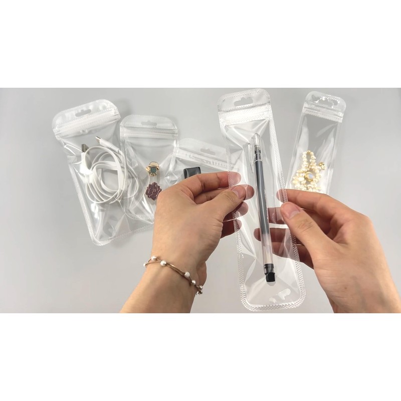 PABCK 100Pcs 2.36x7.28 inch (usable 1.97x5.9 inch) Self Sealing Bag with Hang Hole Resealable Zip Storage Lock Bag Clear Plastic Hanging Bag for Packaging