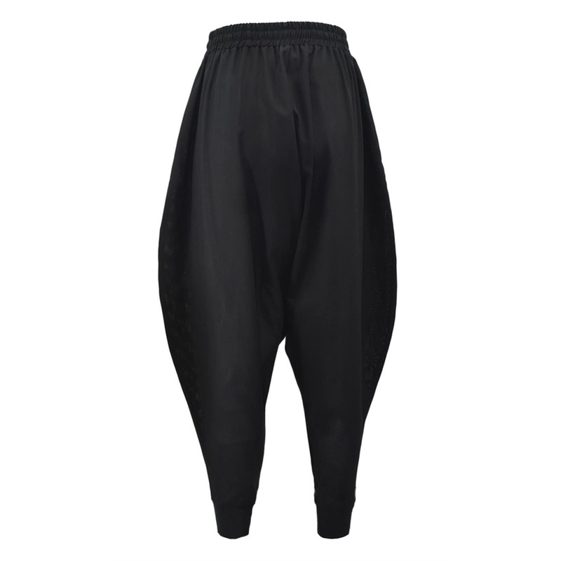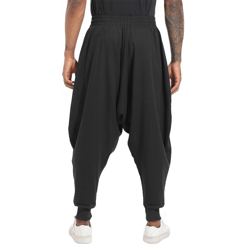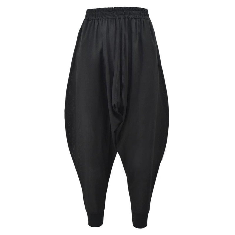 PACEIADTA Men Elastic Waist Harem Pants Loose Drawstring Drop Crotch Trousers (X-Large, Black-1)