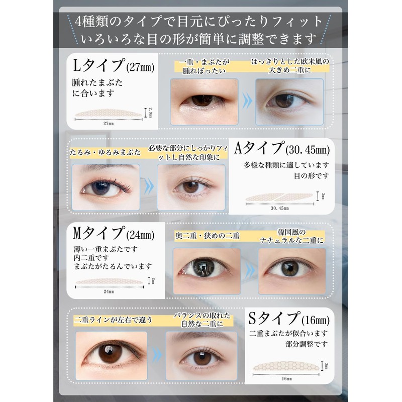 - ✅【選べる4サイズでぴったりフィット】 A・S・M・Lの4種類をふたえテープを展開。目元の形やまぶたの状態に合わせて最適なタイプが選べます。