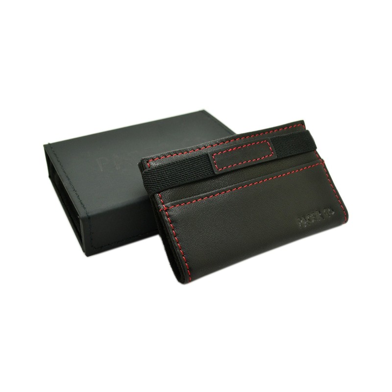 Pacer Go Minimalist Credit Card Holder RFID Blocking Slim Front Pocket Wallet Genuine Leather (Black-red stitching-horizonal vertion-emboss logo)