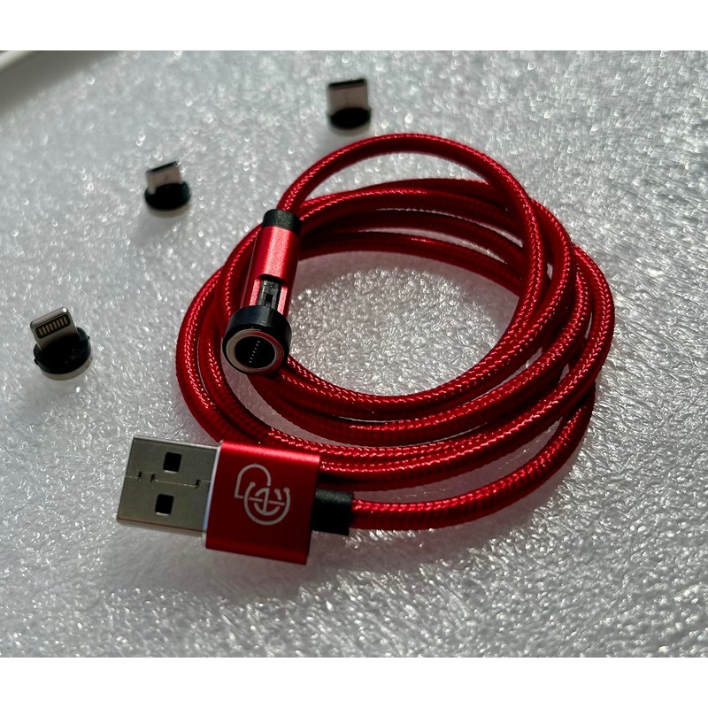 Pacific Custom Engineering USB Charging Data Cable 540° Rotation – 3.3ft Red with 3 Magnetic Tips