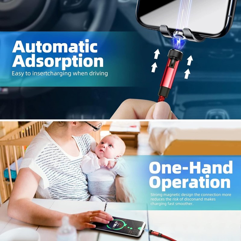 - 540°Rotation Design – The upgrade magnetic charging cable allows magnet tip to rotate 360° and charging head to bend 180°, this convenient design allow you to find the right angle for every charging occasion. Precisely completes the magnetic connection, which improves charging efficiency, Give you a different charging experience.