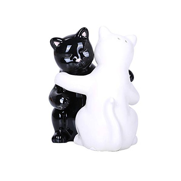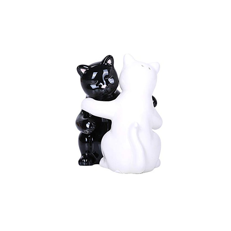 Pacific Giftware Hugging White and Black Magnetic Ceramic Salt and Pepper Shakers Set