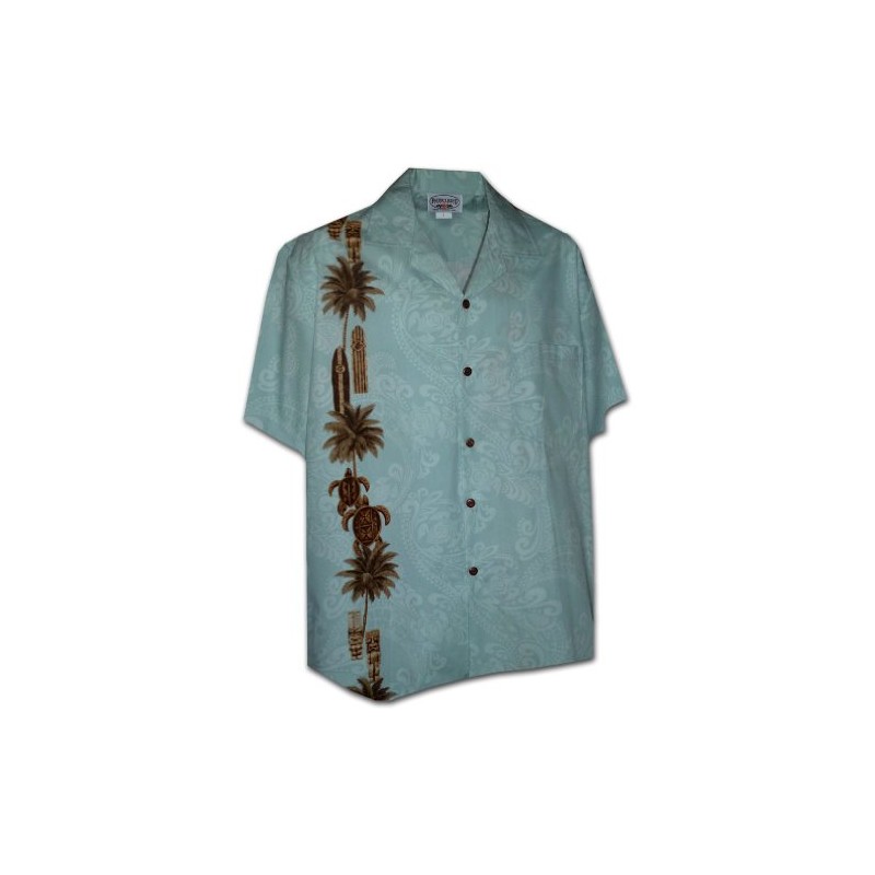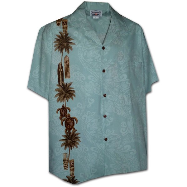 Pacific Legend Hawaiian Tiki Panel Aloha Shirt Sky M