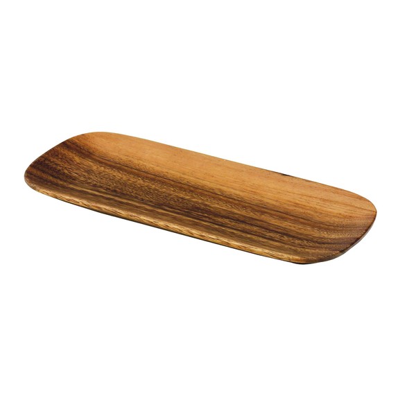 - Pacific Merchants Acaciaware acacia wood serving trays are handcrafted from one solid piece of wood. Because they are hand made, each piece has a unique shape and beautiful, rich wood grain.