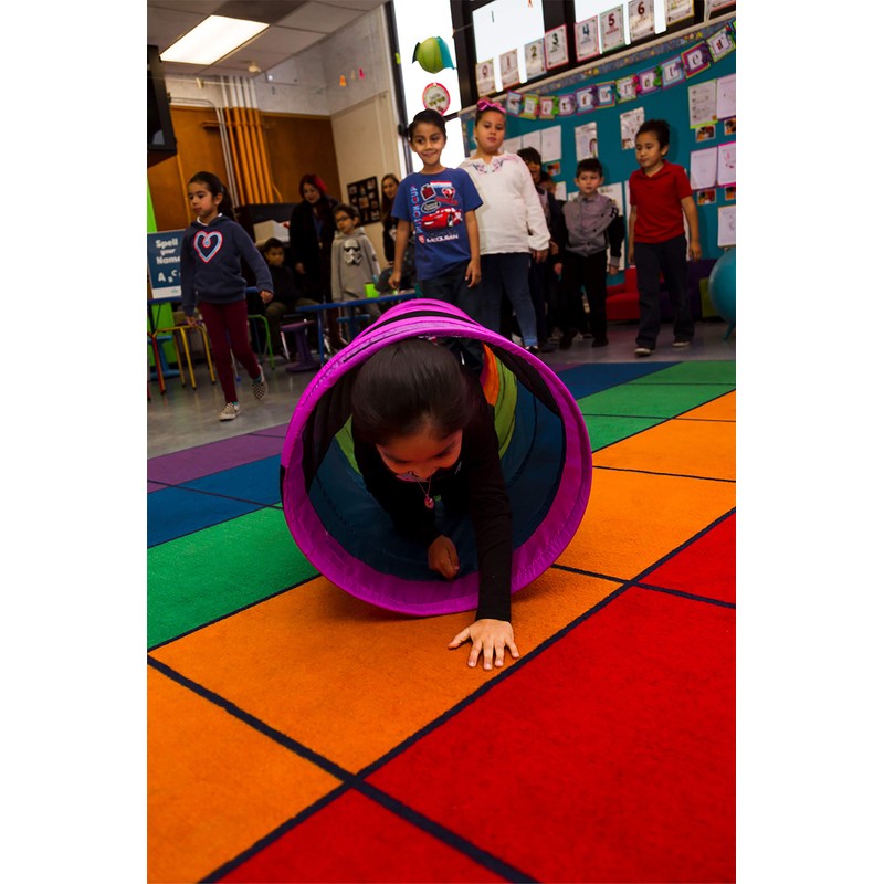 We've taken our classic mesh tunnel design and given it a modern color twist. Measuring 6 feet long and 19 inches diameter, the Peek-A-Boo I See You Tunnel is the perfect size for young children to work on their gross motor skills by crawling in a fun and stimulating environment. The quality construction is not only ideal for rugged play but it is also designed to be opened and closed in just a few seconds. Best of all, your child can stretch their imagination for hours in comfort and safety, thanks to the padding around the spring-steel frame and the mesh material that allows for ample light and air flow. When your child has finished playing, the tunnel folds flat for space-saving storage.