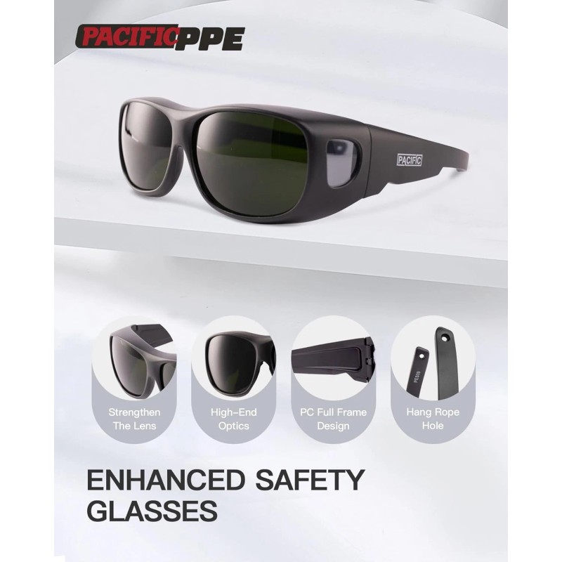 PACIFIC PPE Welding Glasses, Wrap-Around Welding Goggles, Anti-Scratch Safety Glasses, UV Protection, Welding Glasses for Men, ANSI/ISEA & MCEPS Compliant, IR Shade 5