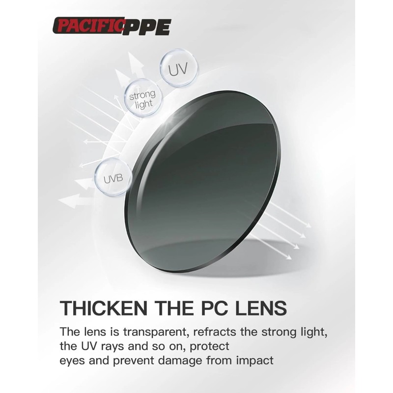 PACIFIC PPE Safety Glasses with Anti-Scratch Coating are designed to provide protection against UV rays, and feature a anti-scratch coating. Protect your eyes bu filtering bright light!
