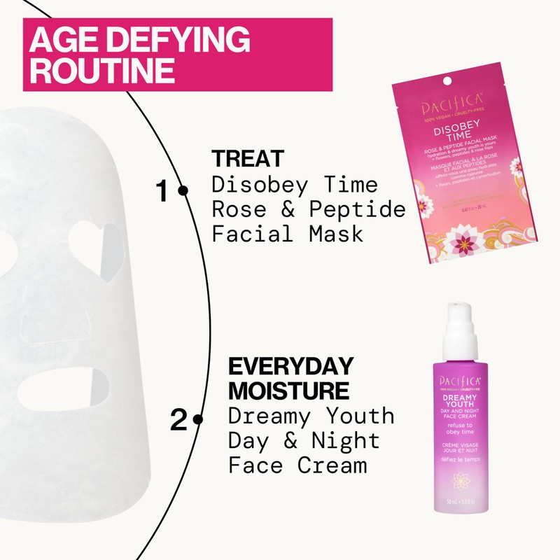 Pacifica Disobey Time Rose & Peptide Facial Sheet Mask Hydrating Anti-Aging Mask for Fine Lines & Dry Skin Infused w/Hyaluronic Acid & Chamomile Clean Beauty Vegan & Cruelty-Free Dermatologist Tested