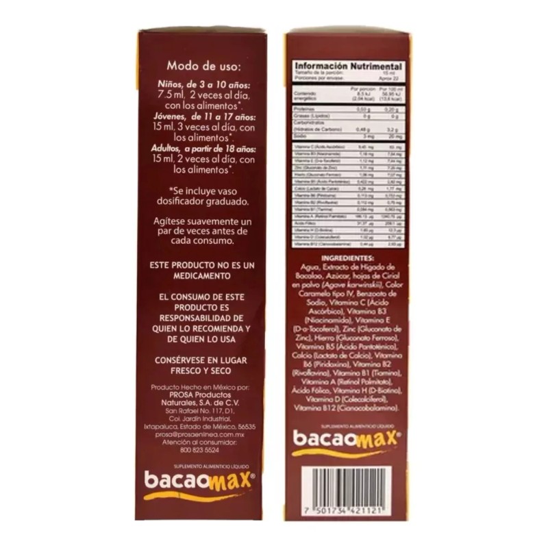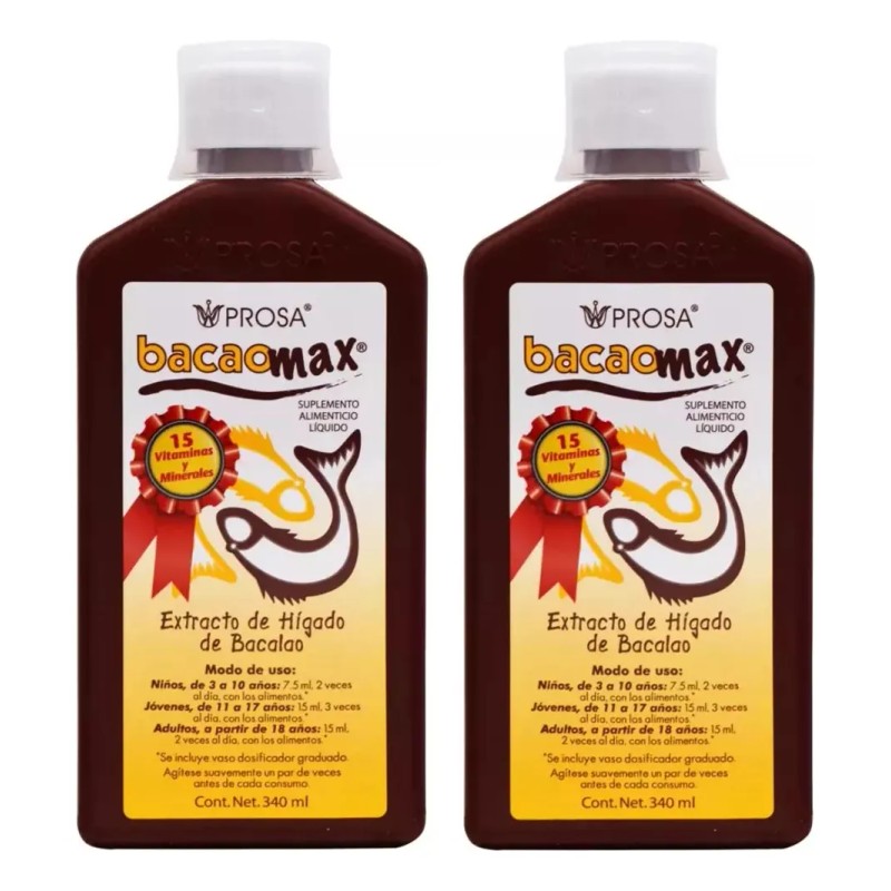 Pack 2 Jarabe Bacaomax Higado De Bacalao 340 Ml Prosa