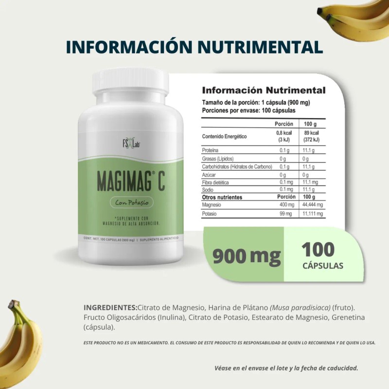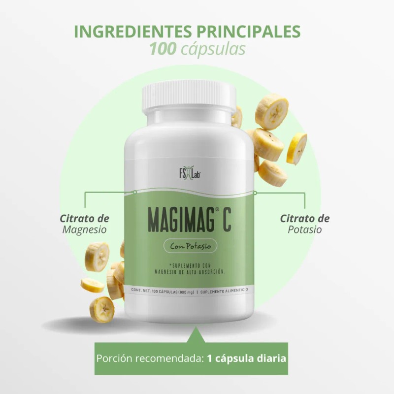 MAGIMAG C : Cápsulas con 400 mg de Citrato de Magnesio y 99 mg de Citrato de Potasio por cápsula