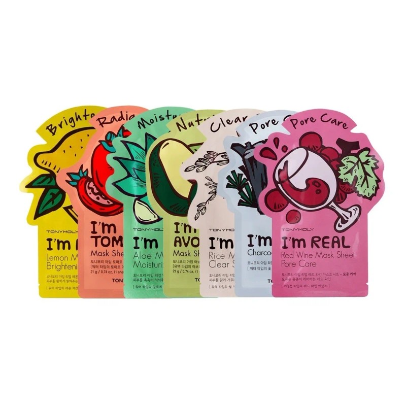 Pack de Mascarillas “I’m Real” de Tonymoly 🇰🇷 con extractos naturales 🍯🍋🍅