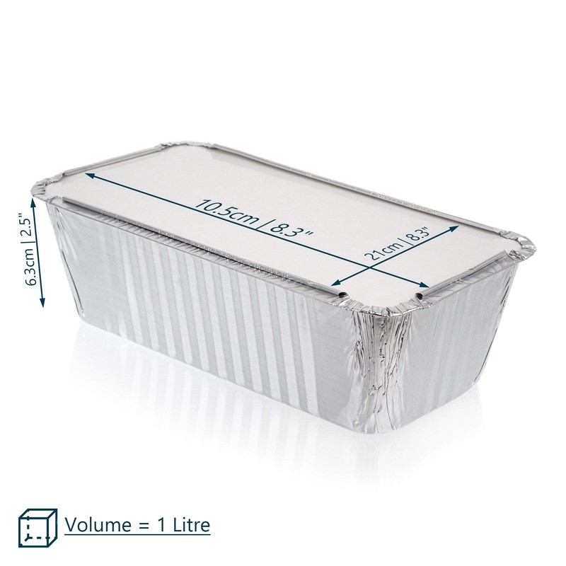 Pack of 10, 1 Litre Aluminum Container Pans with Lids ~ Foil Trays with Lids ~ Good for Baking, Cooking, Storing and Freezing ~ Loaf Size 10.5.cm x 21cm (4.1 inch x 8.25 inch)