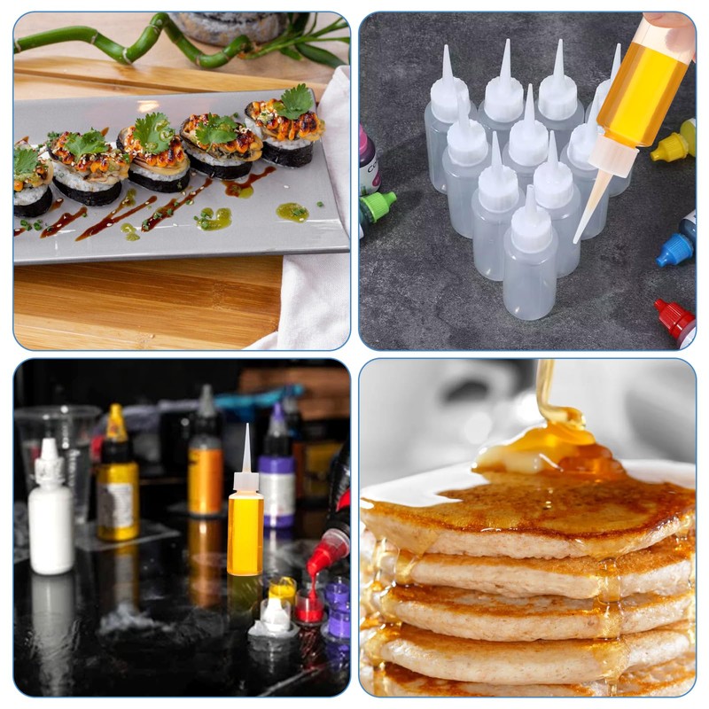 • Wide range of uses: small squeeze bottle can be used for a variety of liquid dispensing work, such as glue, sauce, oil, cream, alcohol, lotion, lubricant, etc.
