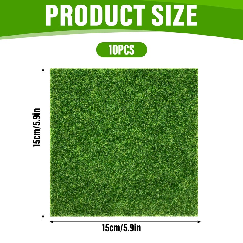 - Small artificial grass set: you will receive 10 pieces artificial grass miniature garden with the dimensions 15 x 15 cm (L x W), each 5 mm high, and is perfect for miniature landscapes and DIY projects, miniature garden decoration.