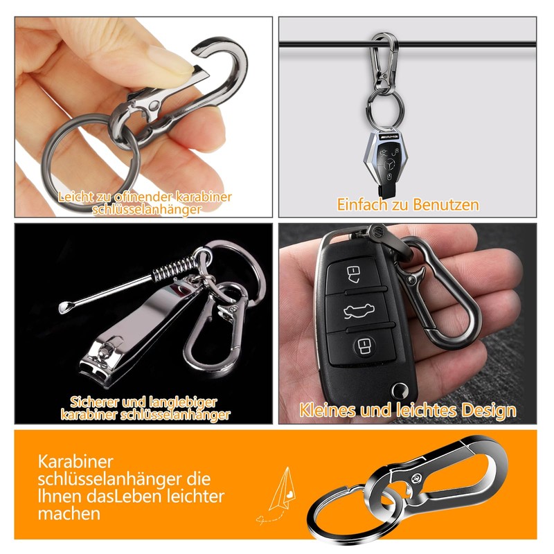- Locking mechanism: carabiner key ring mechanism has been carefully designed, carabiner key ring interface is tight, firm and reliable to ensure that your carabiner key ring accessories hang steadily on it, will not fall easily.