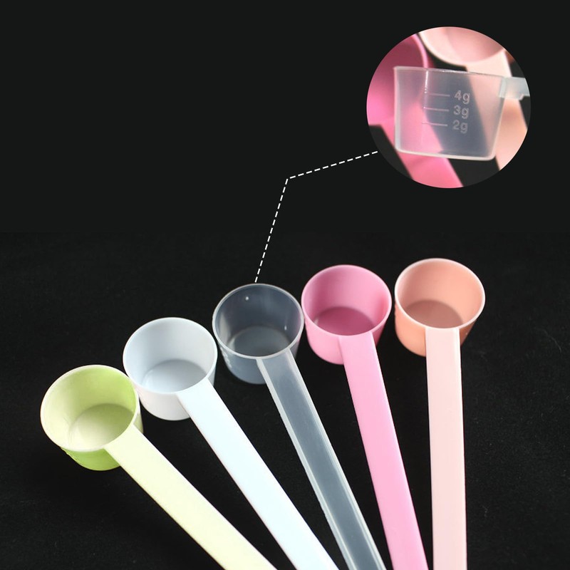 • VARIETY OF COLORS The measuring spoons come in five attractive colors: pink, white, flesh pink, transparent and avocado green. With a capacity of 5g (10ml), you can choose different colours depending on your mood and occasion.