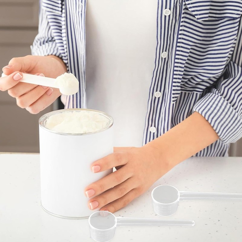 Safe Material Our measuring spoons are made of high quality plastic, which is suitable for direct contact with food. Each measuring spoon has a clear scale and offers you 5 grams of measuring spoons grams for precise measuring.