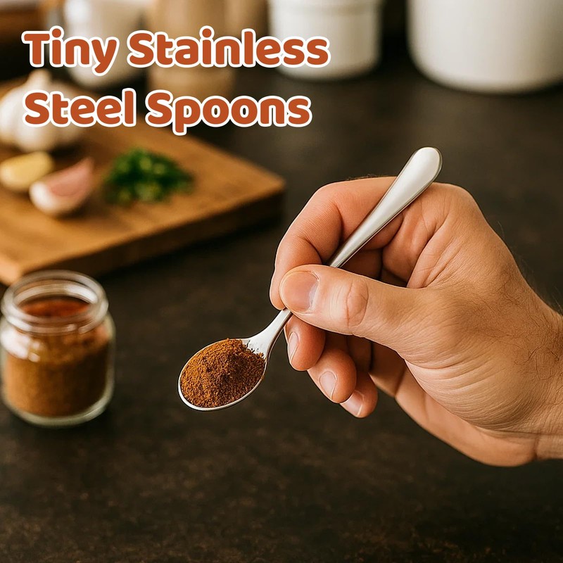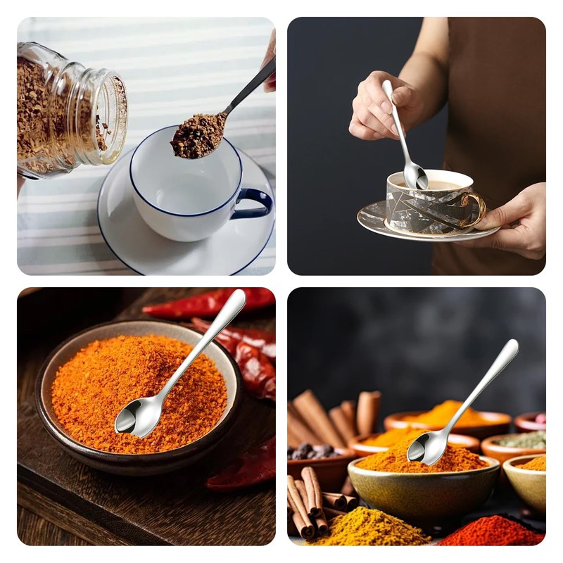 - 10 mini espresso spoons: this practical teaspoon stainless steel set contains 10 small stainless steel spoons, ideal for dispensing espresso, spices or other ingredients; The compact size makes them perfect for spice jars and travel supplies
