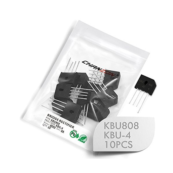 (Pack of 10 Pieces) Chanzon KBU808 Bridge Rectifier Diode 8A 800V KBU-4 (SIP-4) Single Phase, Full Wave 8 Amp 800 Volt Electronic Silicon Diodes