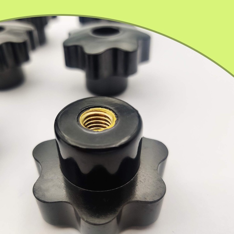 - M8 thread clamping knob black plastic hand knob star shape knob handle for machine tool.