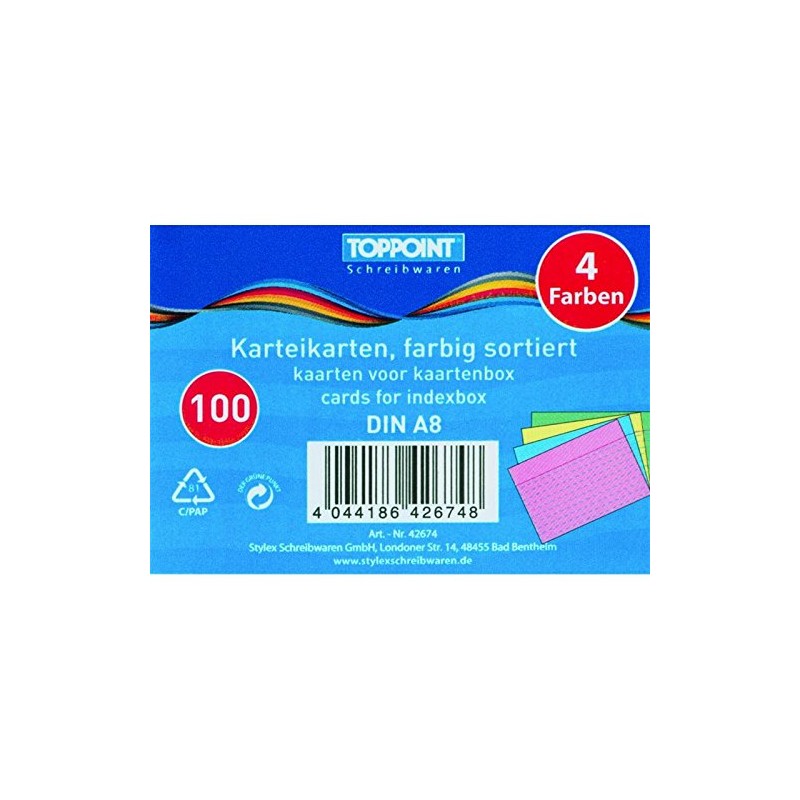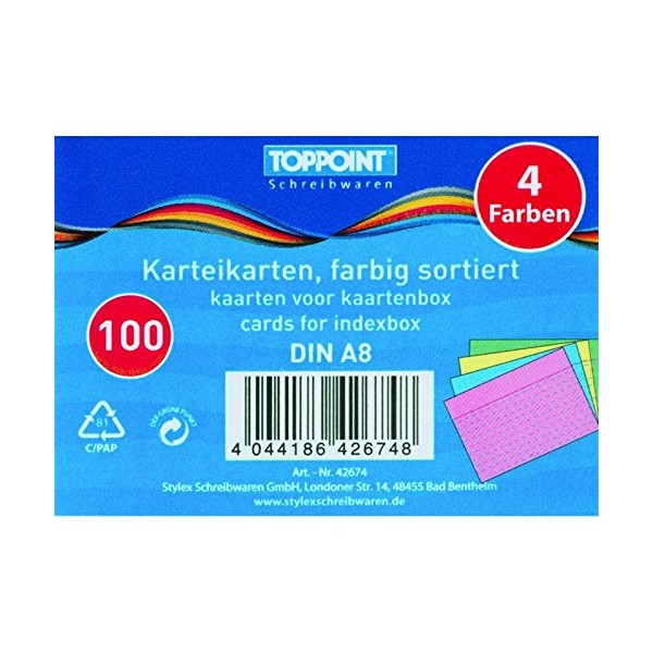 Pack of 100 A8 Assorted Colour Replacement Index Cards